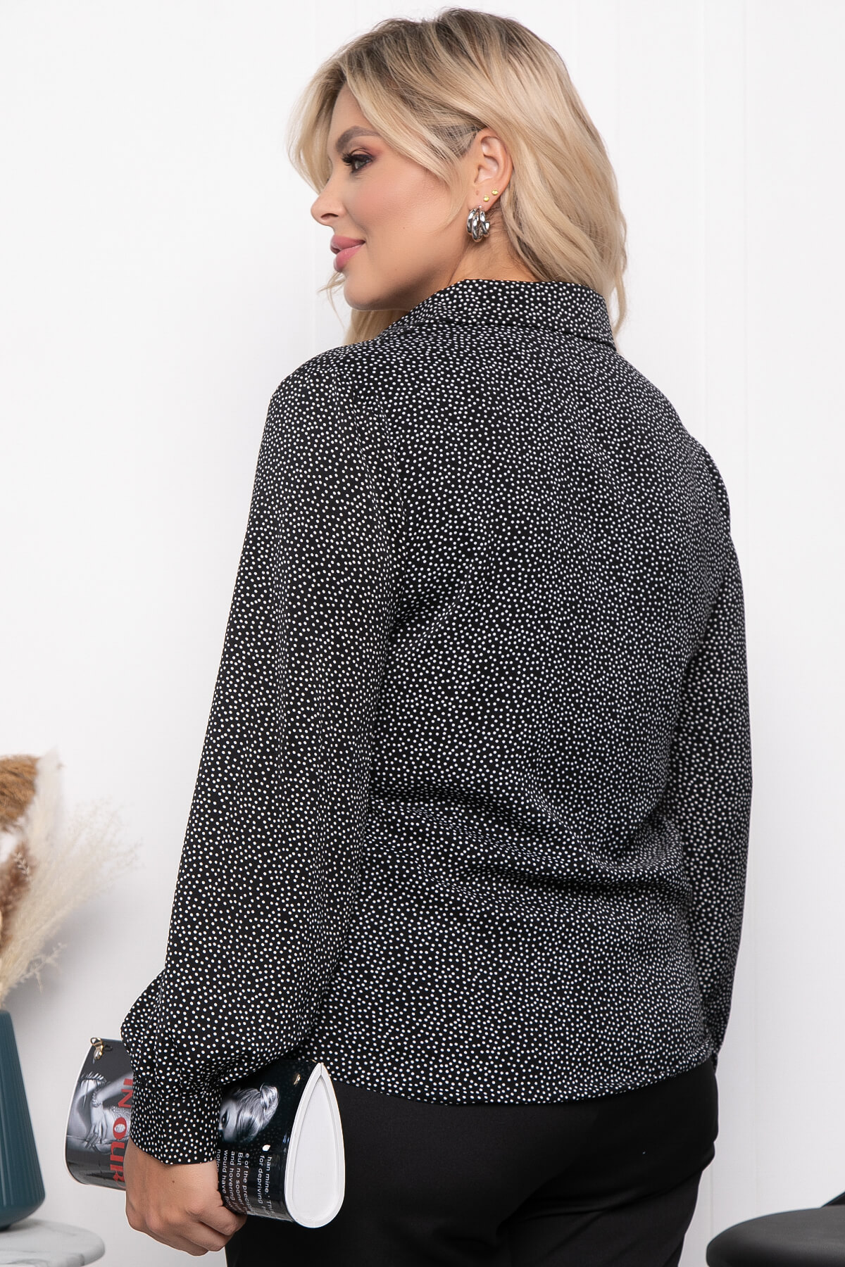 Классическая блуза в мелкий горошек - прекрасный вариант для офисных образов. Модель дополнена красивым акцентом - пышными рукавами на манжетах. По переду блузы выполнена имитация застежки на пуговицы.