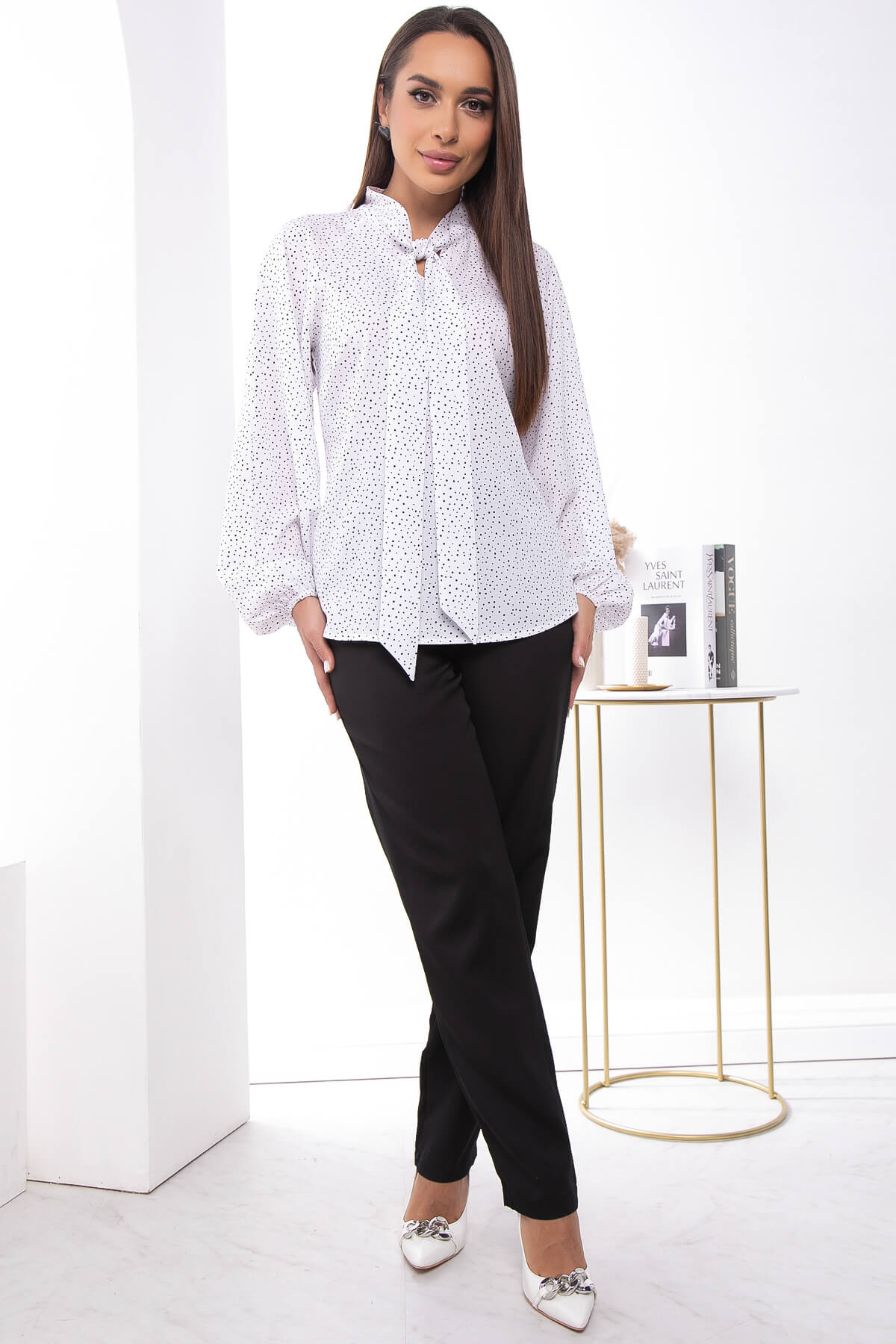 Блуза свободного силуэта, выполненная из приятной к телу ткани, в базовом цвете, который хорошо будет сочетаться с Вашим деловым гардеробом. Рукав втачной, длинный, низ рукава на резинке. По передней части горловины ворот украшен бантом. При помощи такой блузы Вы с лёгкостью сможете украсить свой офисный образ.