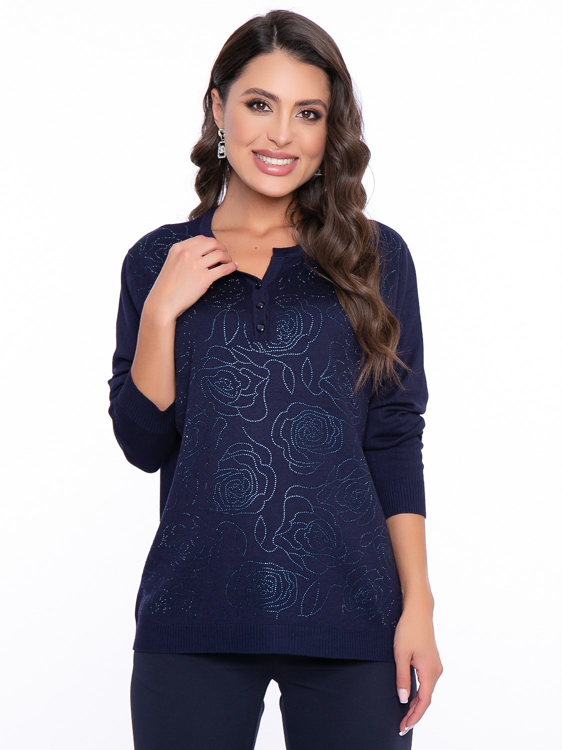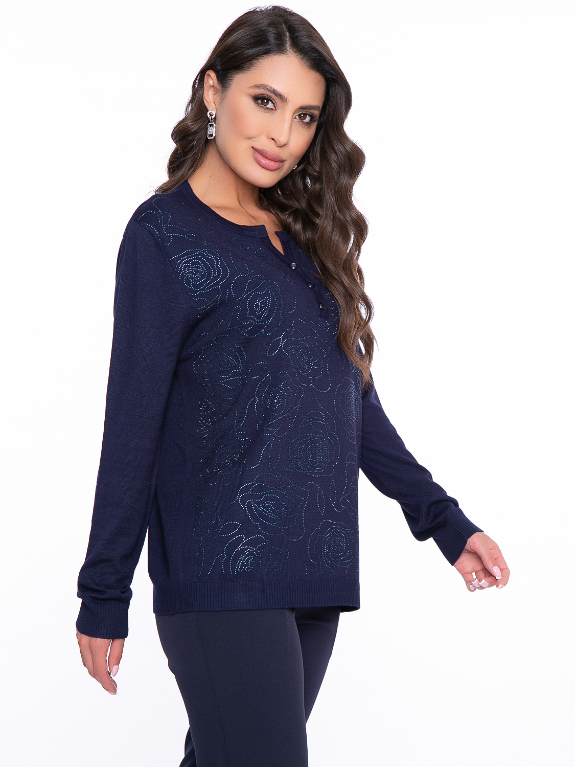 - Передняя часть кофты оформлена термостразами в виде аппликации - розы;
