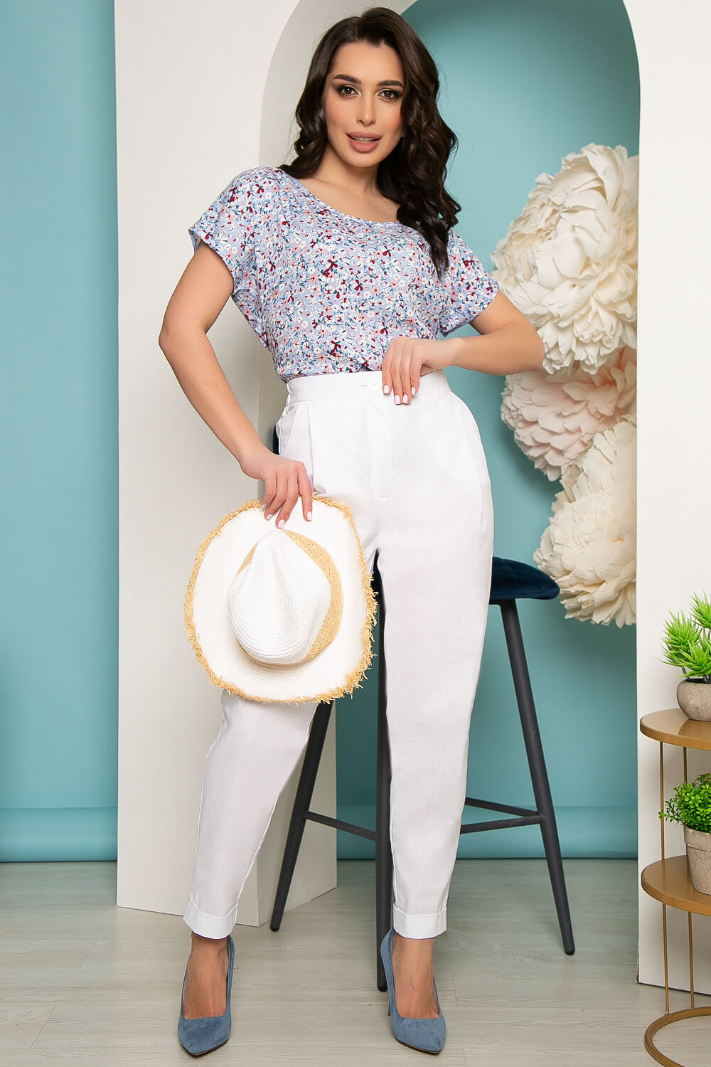 Классическая блуза с нежным цветочным принтом прекрасно дополнит Ваш летний базовый гардероб. Блуза оснащена вшитыми в боковые швы лентами из основной ткани, которые можно завязать как по переду, так и по спинке. Комбинируйте блузу с юбками и брюками, создавая новые образы на каждый день! Блуза прямого кроя, вырез горловины округлый. Рукав цельнокроеный, короткий с отворотом.
