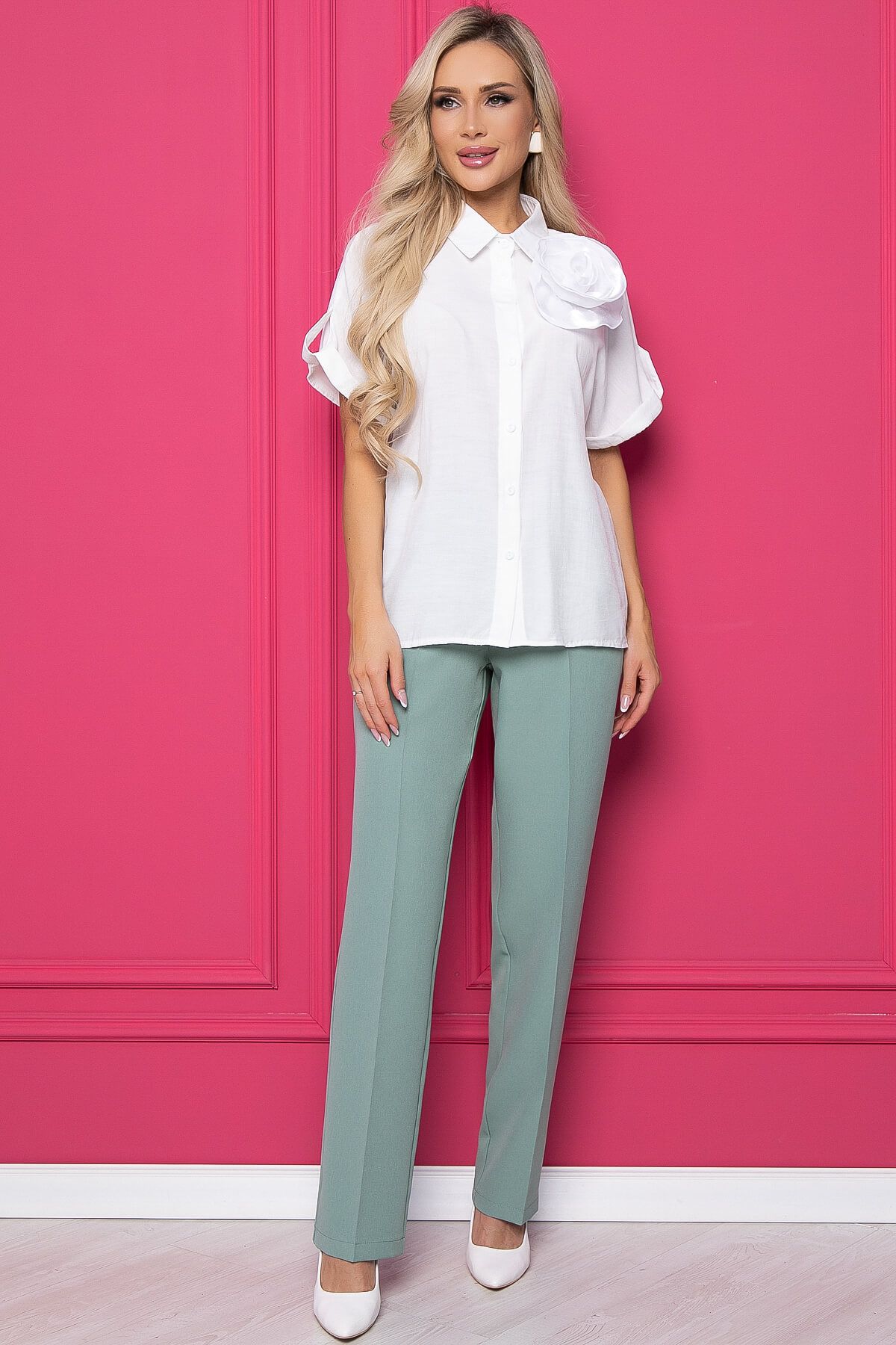 Неизменная классика прямых брюк остается фаворитом в женском гардеробе уже много сезонов. В оливковом цвете брюки приобретают особую элегантность и шик. Модель декорирована карманами в боковых швах. Брюки имеют пояс на резинке, что позволяет чувствовать себя свободно и не сомневаться при выборе размера. На поясе имеются шлевки, что позволяет вам при желании добавить ремень. Такие брюки отлично сочетаются с блузой, топом, водолазкой и легким жилетом.