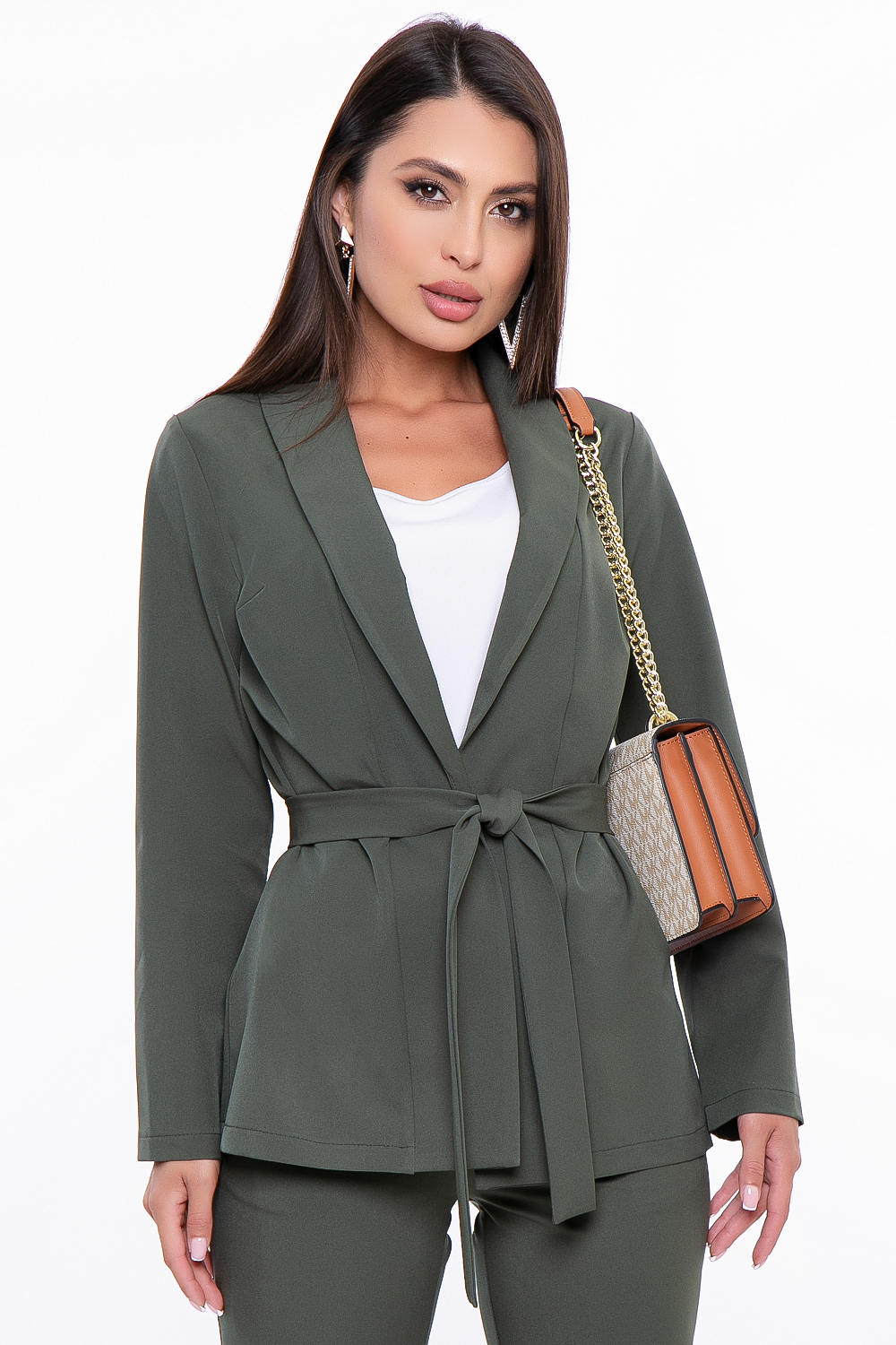 - Жакет с притачной планкой по переду. В комплекте поясок;