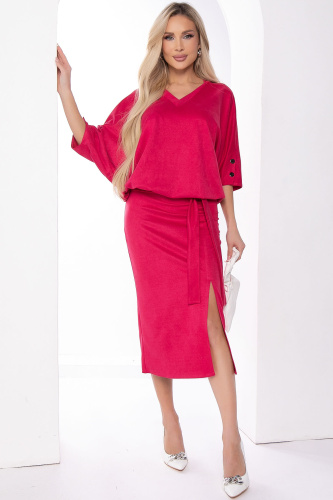 Платье из трикотажа в модном оттенке. Элегантная юбка с игривым разрезом визуально удлиняет ножки. Свободный крой платья скрывает недостатки фигуры. Рукав скроен по типу "летучая мышь", декорирован пуговицами. По талии отрезное. Идеальное решение на каждый день и на праздничное мероприятие.