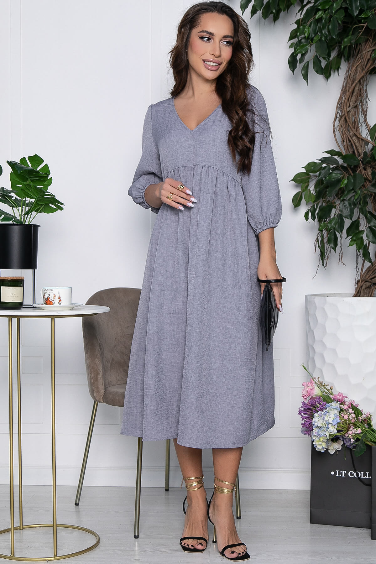 Невесомое воздушное серое платье с эффектом жатки! Благодаря своему крою оно будет удобно для беременных и будущих мам на выписку. Талия завышенная, вырез V-образный спереди и сзади. Низ рукавов на резинке.