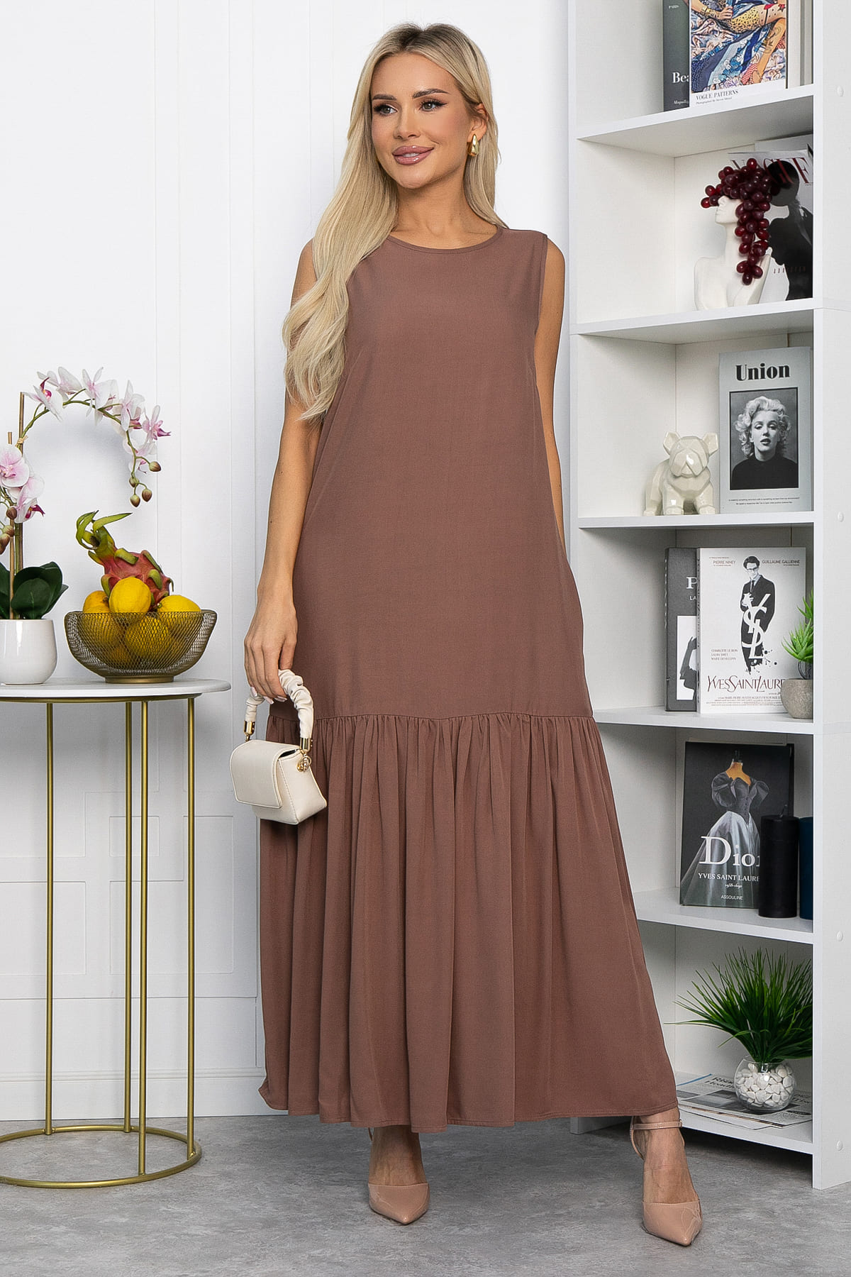 Сарафан в красивом цвете «кофе с молоком» — это идеальный выбор для жарких летних дней и отдыха на природе! Свободный крой обеспечивает свободу движений и комфорт, что делает его идеальным для повседневного образа жизни. На спинке сарафана есть завязки, а его низ украшен воланом, что придаёт ему лёгкость и воздушность. Легко сочетается с любой обувью — босоножками, сандалиями или даже кедами. Создай свой неповторимый образ с нашим удобным и стильным сарафаном!