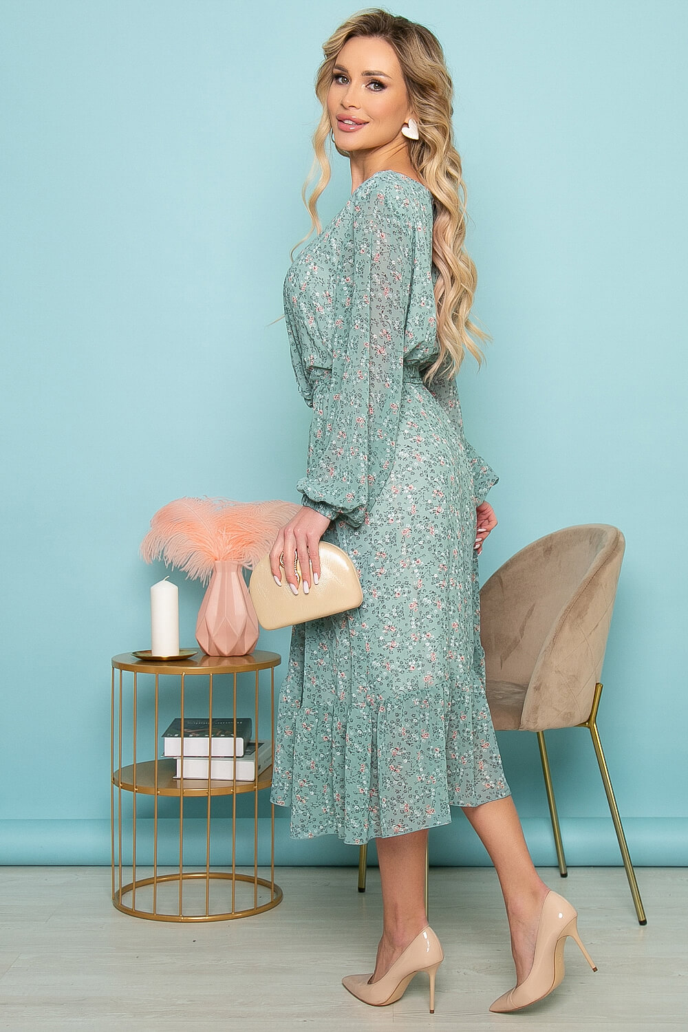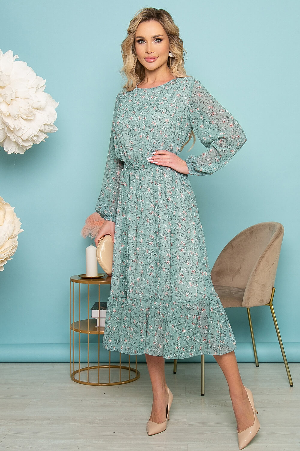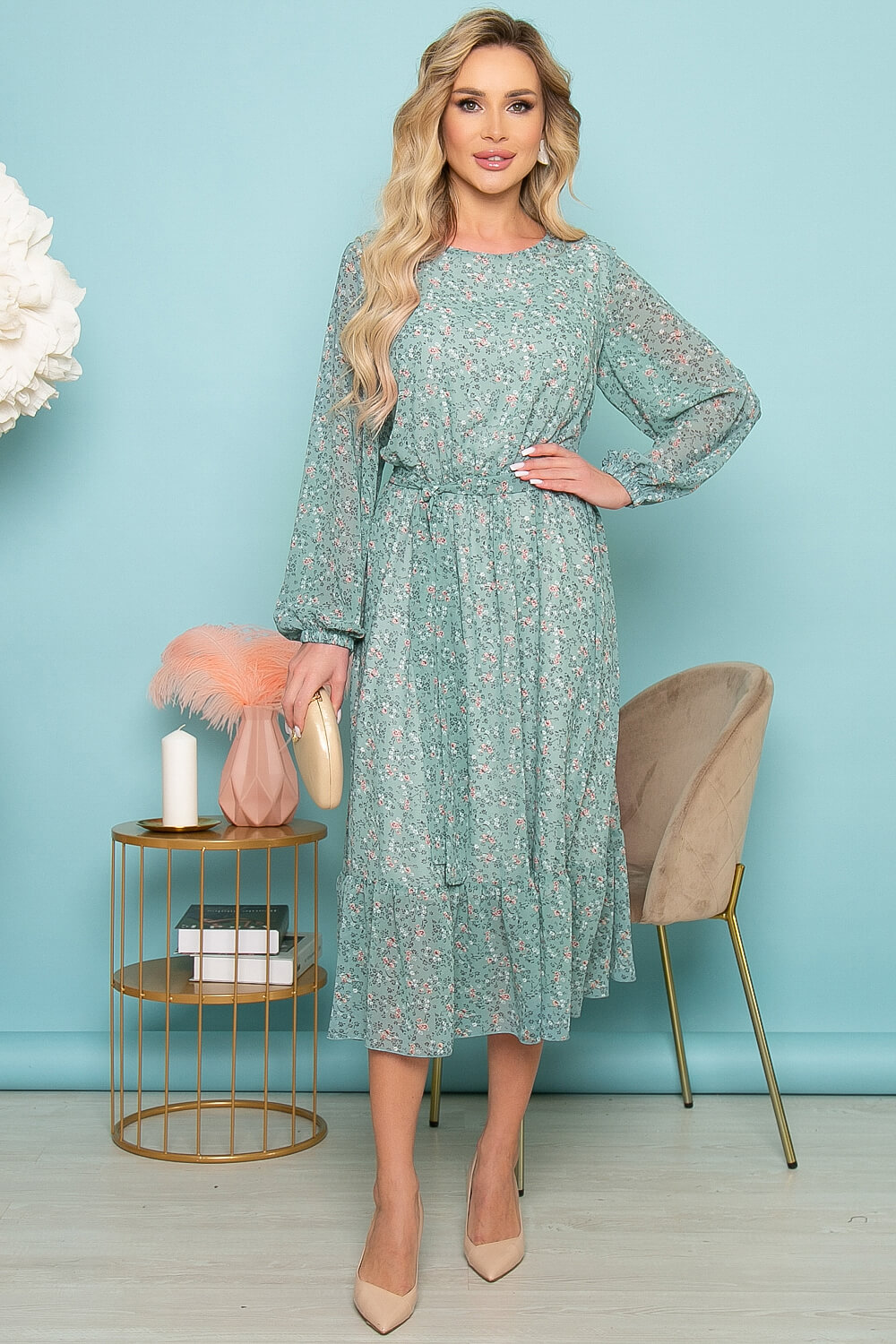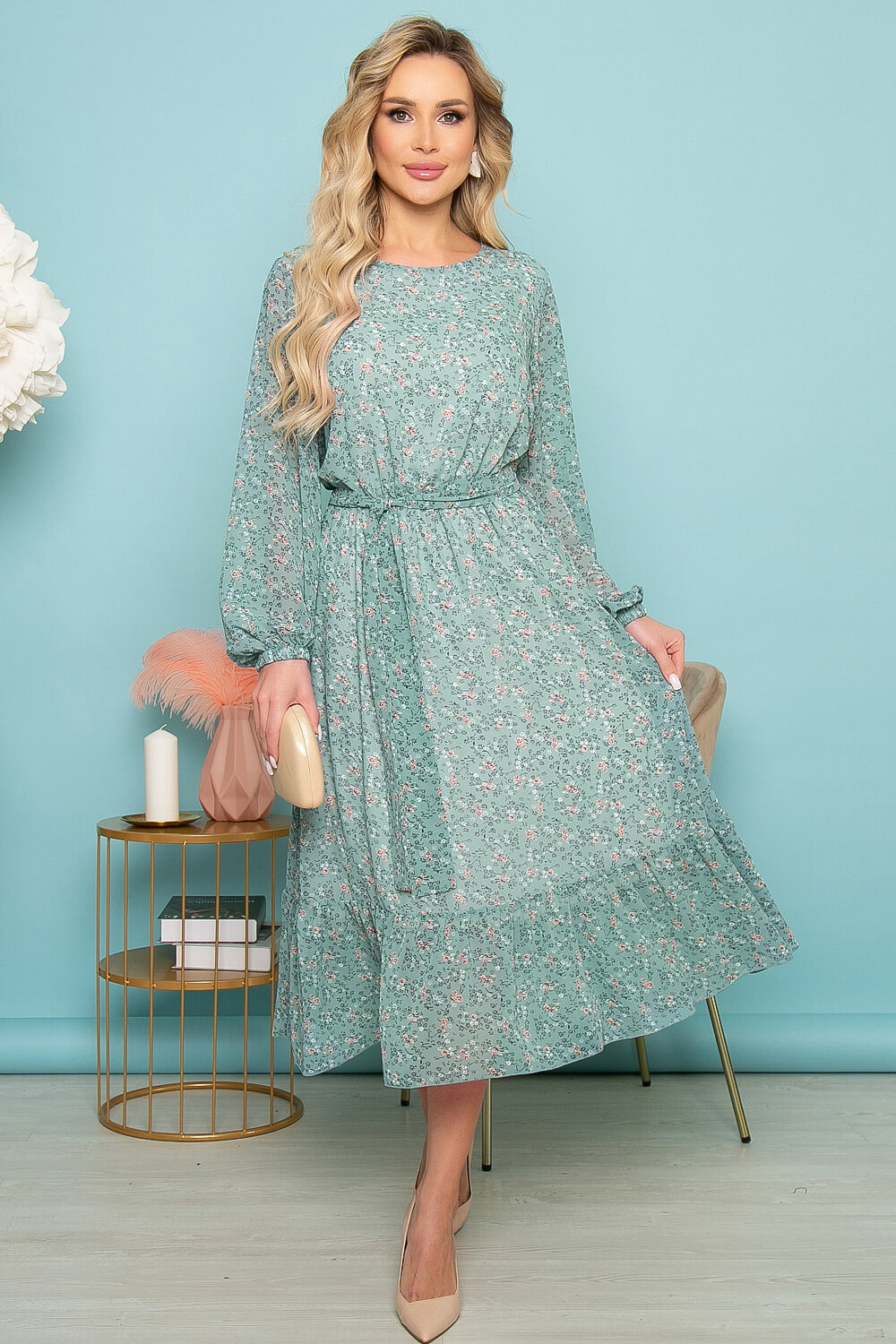 Шифоновое платье летящего кроя с нежным цветочным принтом прекрасно подойдет для создания повседневных образов в весенне-лений период. Весной можно надеть с пальто или тренчем, а летом, оно прекрасно будет смотреться само по себе в сочетании с босоножками или туфлями-лодочками. Платье на подкладке, рукав втачной, длинный, на резинке. Мягкий округлый вырез горловины, талия на резинке, по низу платья широкий волан. В комплекте пояс из основной ткани.