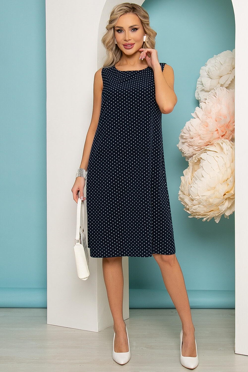 Платье полуприталенного силуэта в горошек без рукава - лаконичный женственный вариант на каждый день. Фасон и цвет предусматривает множество сочетаний. Дополните его жакетом, джинсовой курткой, кардиганом или бомбером, всё зависит от ситуации и Вашего желания.