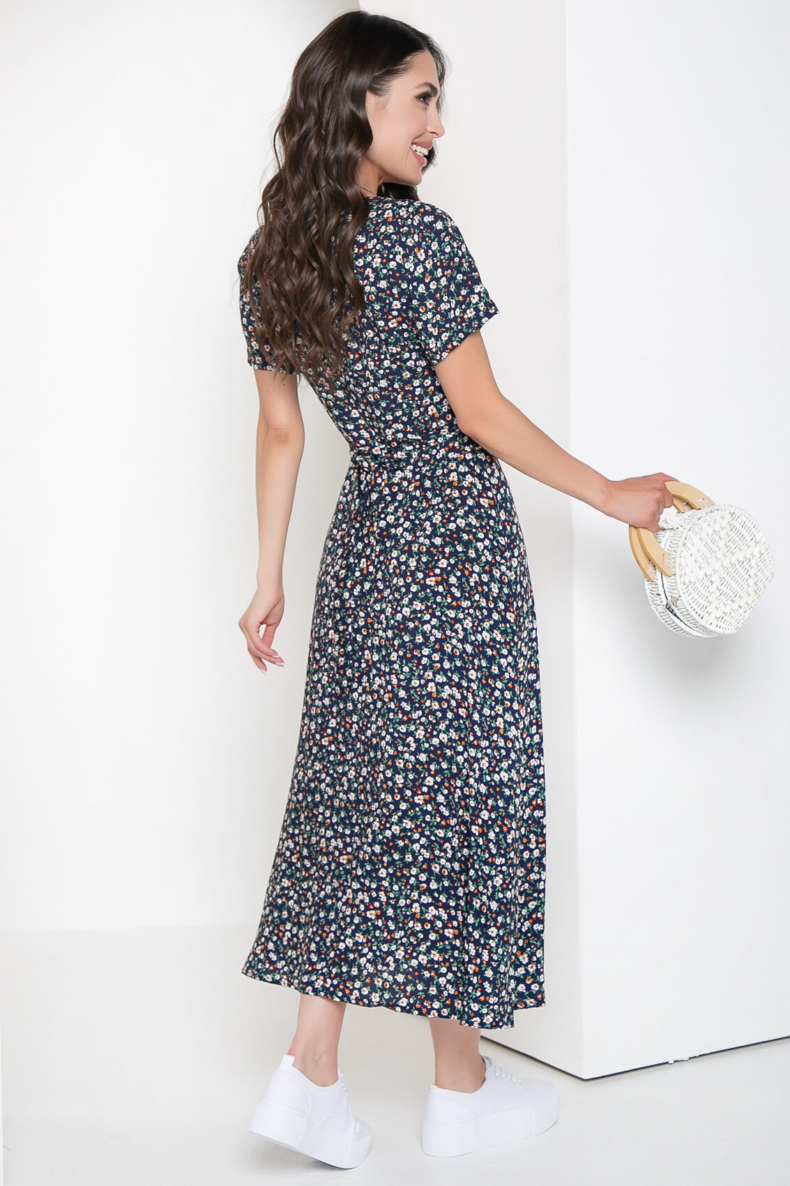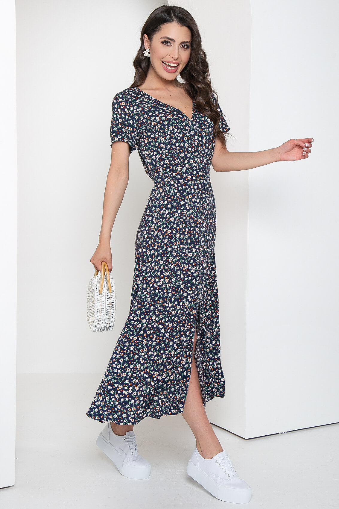Элегантное платье, которое прекрасно подойдет для прогулки или свидания! Хорошо сочетается с каблучком и с обувью на низком ходу. Хит сезона - платье длины миди из натуральной ткани, с очень популярным сейчас цветочным принтом. Мягкий V-образный вырез красиво подчёркивает шею, тонкий поясок - подчеркнет талию. Небольшой разрез по переду выразительно подчеркнет и удлинит Ваши ножки! В боковом шве потайная молния.