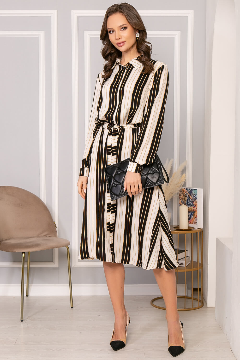 Тренд сезона 2023 года - стильное элегантное платье-рубашка. Такая модель подойдёт как для создания делового, так и повседневного образа. Подобрать аксессуары можно легко, всё зависит от вашего настроения и ситуации. В классическом варианте платье отлично выглядит с туфлями на каблуке, но в более тёплый период. Пояс из основной ткани входит в комплект. Благодаря летящей юбке такая модель платья выглядит очень женственно и элегантно. Кстати, такое платье обязательно стоит взять с собой отпуск! Оно неприхотливо в выборе аксессуаров и может быть использовано и в качестве нарядного и в качестве повседневного образа.