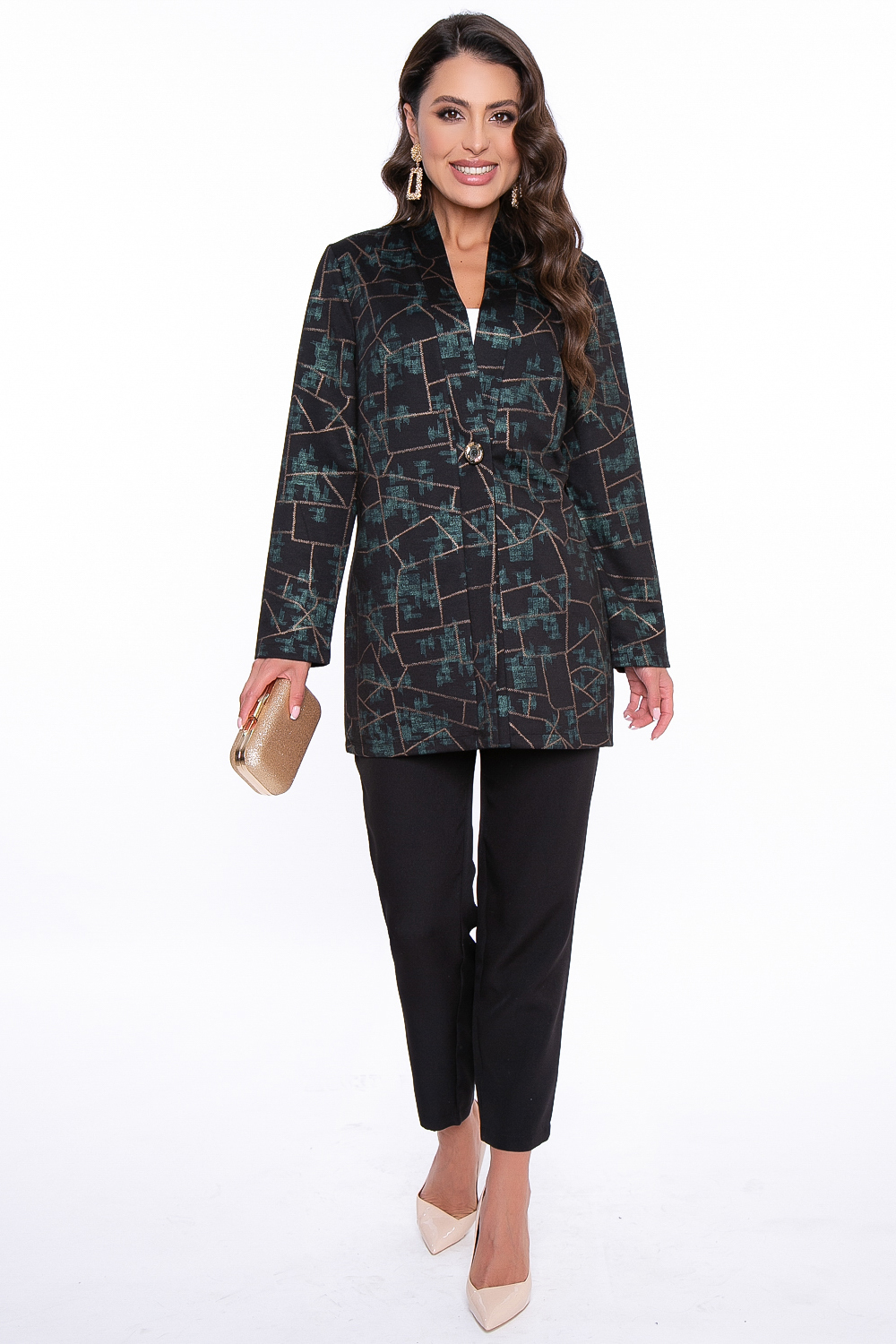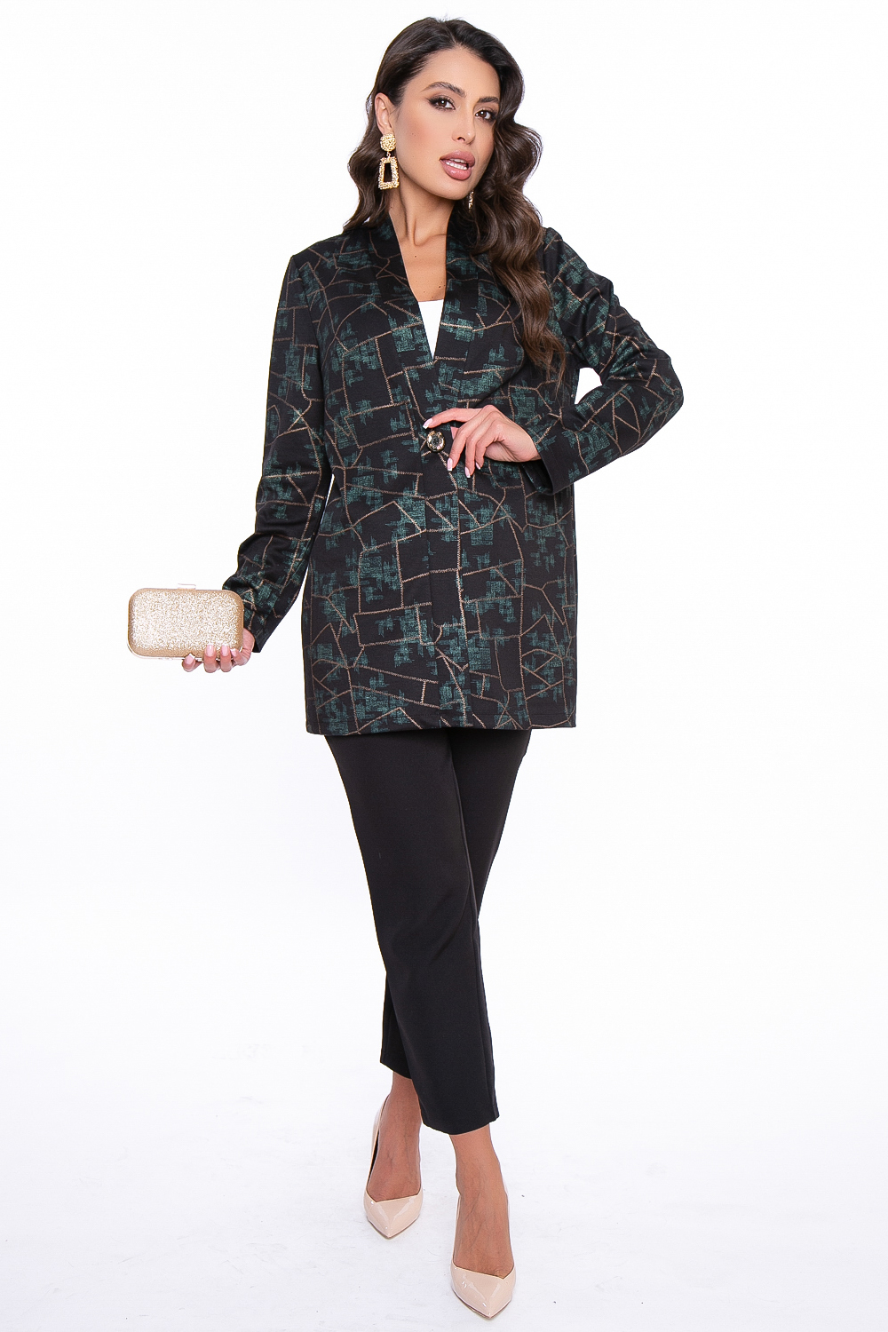 - Принт: изумрудно-золотая абстракция;
