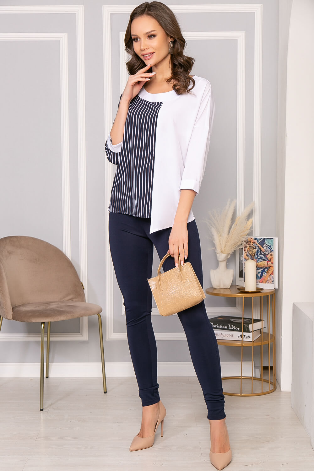 Блуза свободного силуэта, выполненная из приятной к телу ткани будет хорошо сочетаться с Вашим деловым гардеробом. Рукав втачной, три четверти, линия плеча спущена.