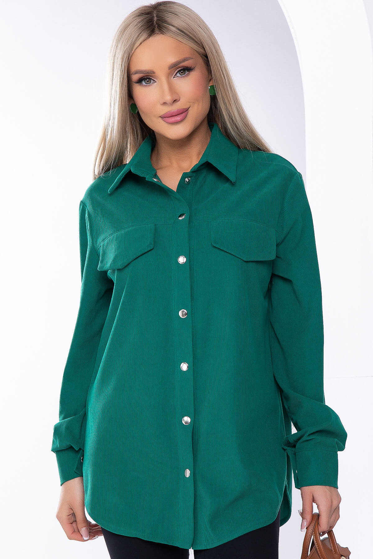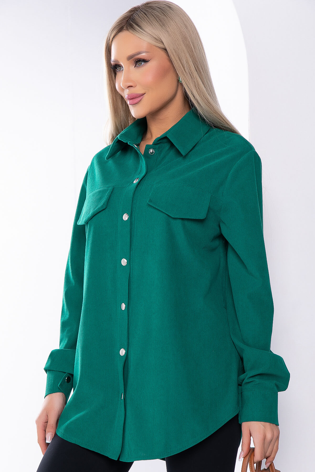 Рубашка из микровельвета в стиле оверсайз - абсолютно незаменимая вещь. С её помощь можно создавать большое количество образов и чувствовать себя комфортно. Рубашка застёгивается на кнопки, рукав втачной, длинный, на мажете. Манжет также застёгивается на кнопку. По переду имитация карманов с клапаном. Сочетайте её с джинсами или брюками, вносите яркие акценты в повседневные образы!