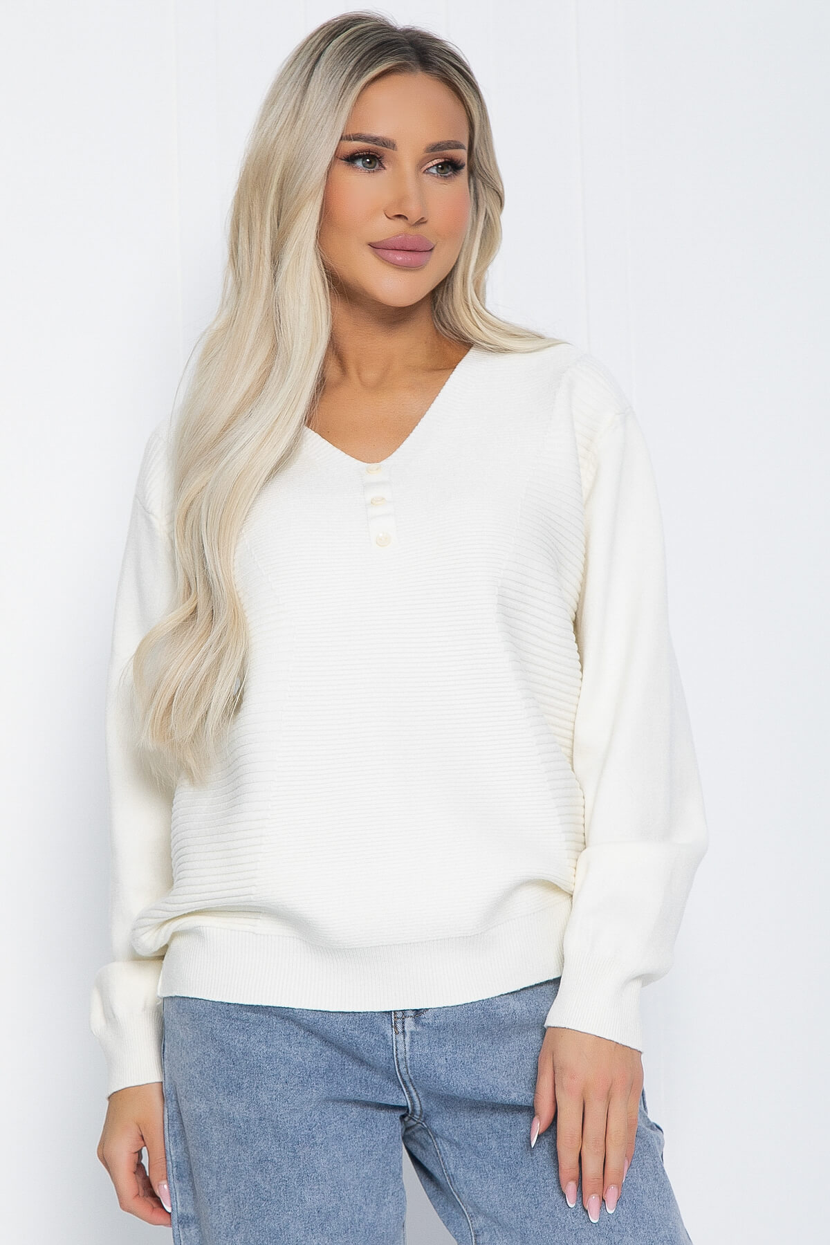 Вы ищете беспроигрышную универсальную модель, которая станет основой вашего гардероба? Тогда этот джемпер — это именно то, что вам нужно! Лаконичный элегантный дизайн в стиле минимализма подчеркнет вашу индивидуальность и поможет создать образы, которые запомнятся. Благодаря полуприлегающему крою, V-образному вырезу горловины с декоративными пуговицами обеспечивает хорошую посадку по фигуре, придавая максимальную свободу движений и не теряя форму со временем.