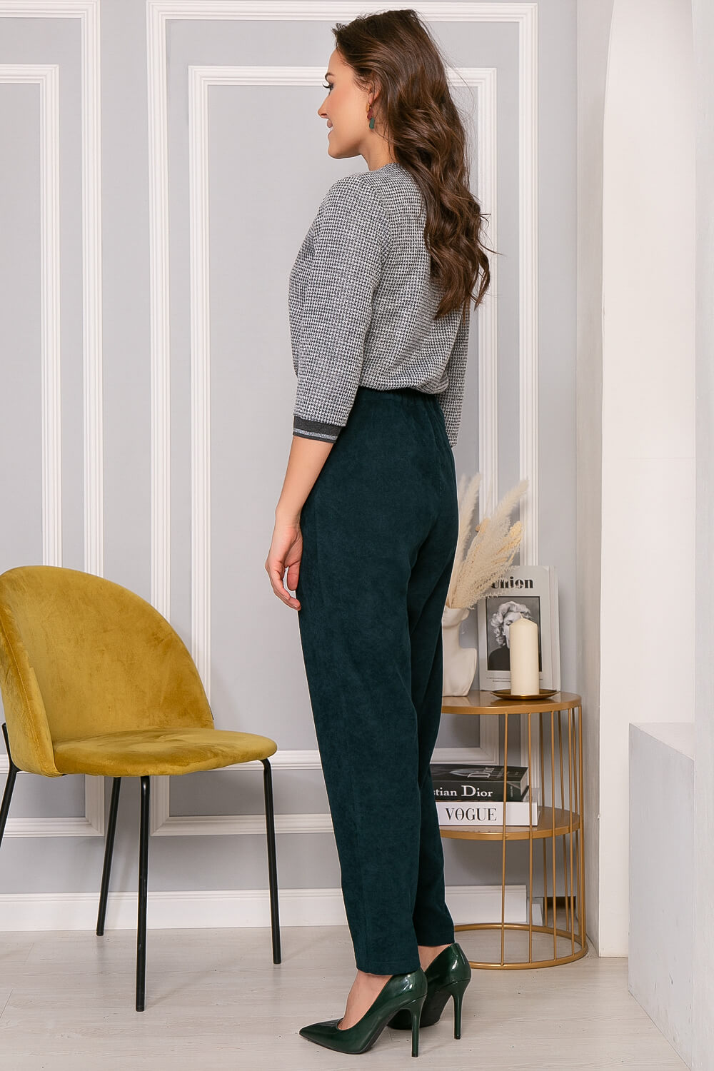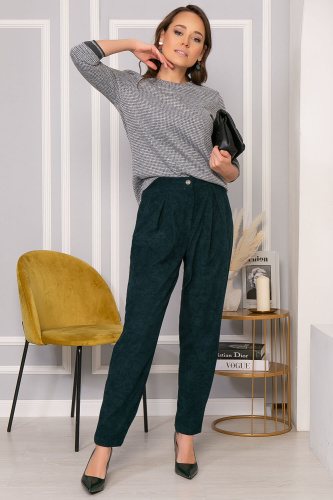 Брюки-бананы из вельвета для создания комфортного образа. Свободная форма брюк за счет складок на бедрах и сужения к низу создает модный женский силуэт. Брюки имеют карманы, по спинке пояс на резинке, обеспечивающий комфортное прилегание. Для создания экстравагантного образа сочетайте их с яркими джемперами. Тем, кто предпочитает классику, подойдут сочетания с изящными свитерами и кофтами.
