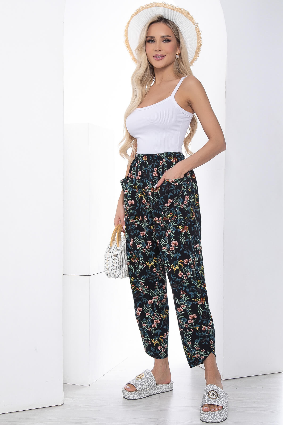 Объёмные брюки в стиле бохо - это свободный непринужденный стиль в современной моде. Шароварный силуэт создается за счет резинки по талии, свободной посадки в бедрах, бокового защипа по низу и оригинального высокого манжета в виде тюльпана. Свободные, прямые, просторные брюки бананы выгодно подчеркивают женские формы и скрывают недостатки. Комбинируйте их с различными видами топов, джемперов, блузок или футболок. Различные аутфиты сделают вас стильной, модной для любого выхода. Такие штаны универсальны и могут быть частью городского casual образа или классического делового, повседневного школьного и даже спортивного.