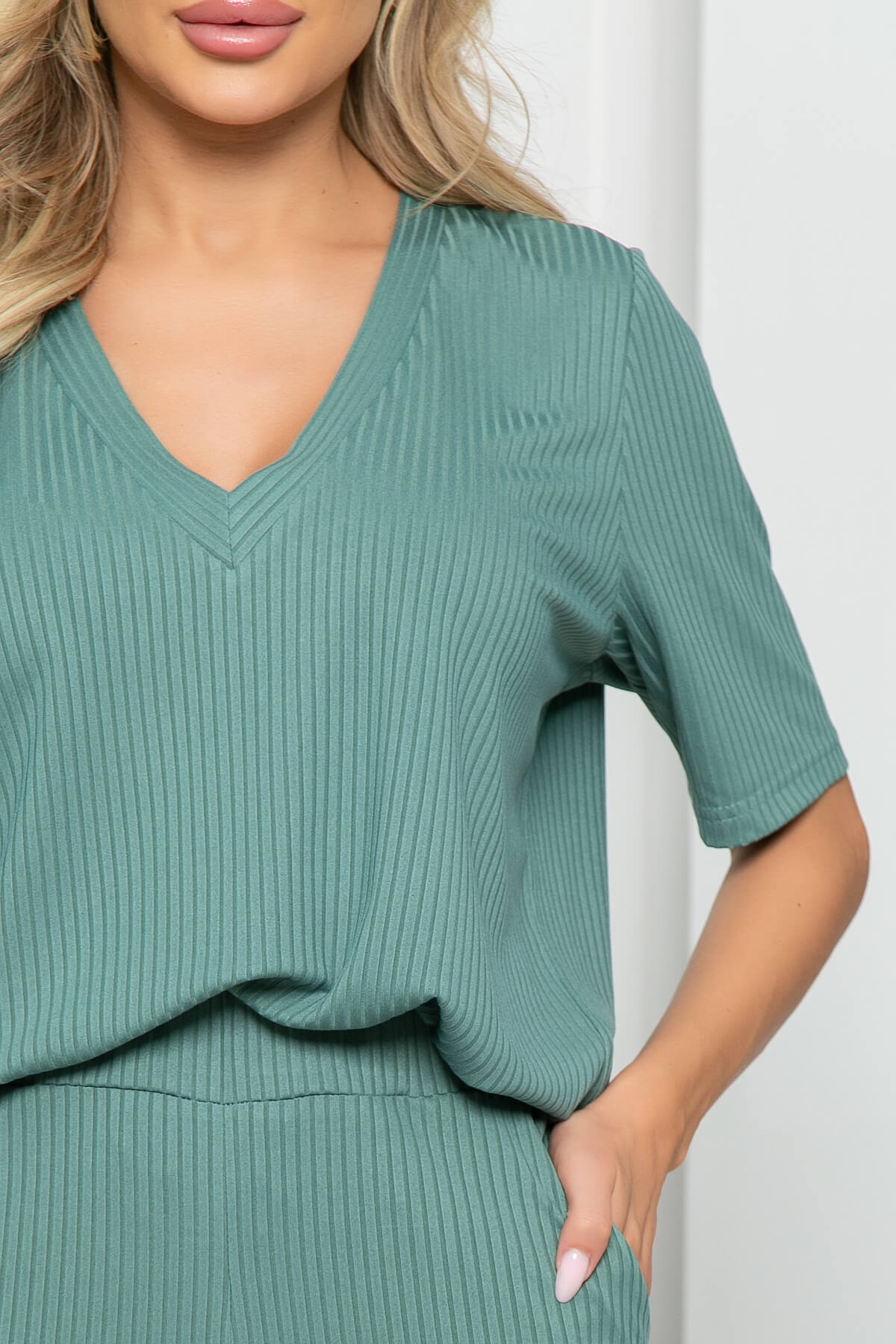 Наша стильная новинка для встречи весны! Костюм-двойка, состоящий из брюк на резинке и джемпера прямого кроя. Очень удобный комплект для создания стильного повседневного образа. При желании подчеркнуть талию, верх можно заправить или использовать пояс, входящий в комплект. Удлиненный джемпер прямого кроя имеет V-образный вырез горловины и короткий рукав. Брюки прямого кроя, по талии на комфортной резинке.