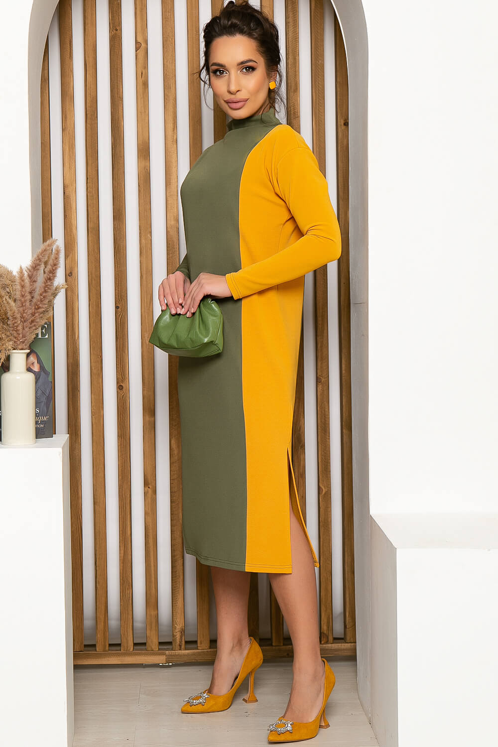 Добавляем яркости повседневным образам! Невероятно удобное платье прямого кроя на каждый день в трендовом цветовом сочетании. Прекрасно подойдёт для любого сезона. Комфортный длинный рукав, горловина - цельнокроеная стойка. По бокам платье оснащено разрезами. В комплект входит пояс из основной ткани.