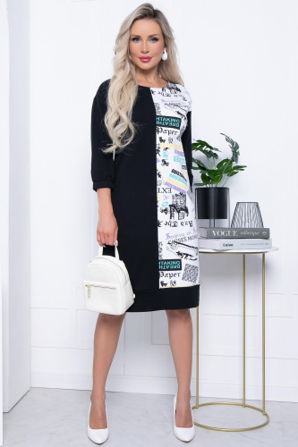 Платье свободного кроя из футера для ценителей стиля "Street style". Создать комфортный и модный образ теперь не составит труда! Платье с лёгкостью впишется в ваш повседневный гардероб, ведь его можно сочетать хоть с кроссовками, хоть с ботинками или другой подходящей обувью. Перед платья выполнен из двух видов ткани: однотонной и принтованной. Спинка - однотонная. Горловина - лодочка, плечо спущенное, рукав 3 четверти, на резине. Низ платья обработан манжетом.