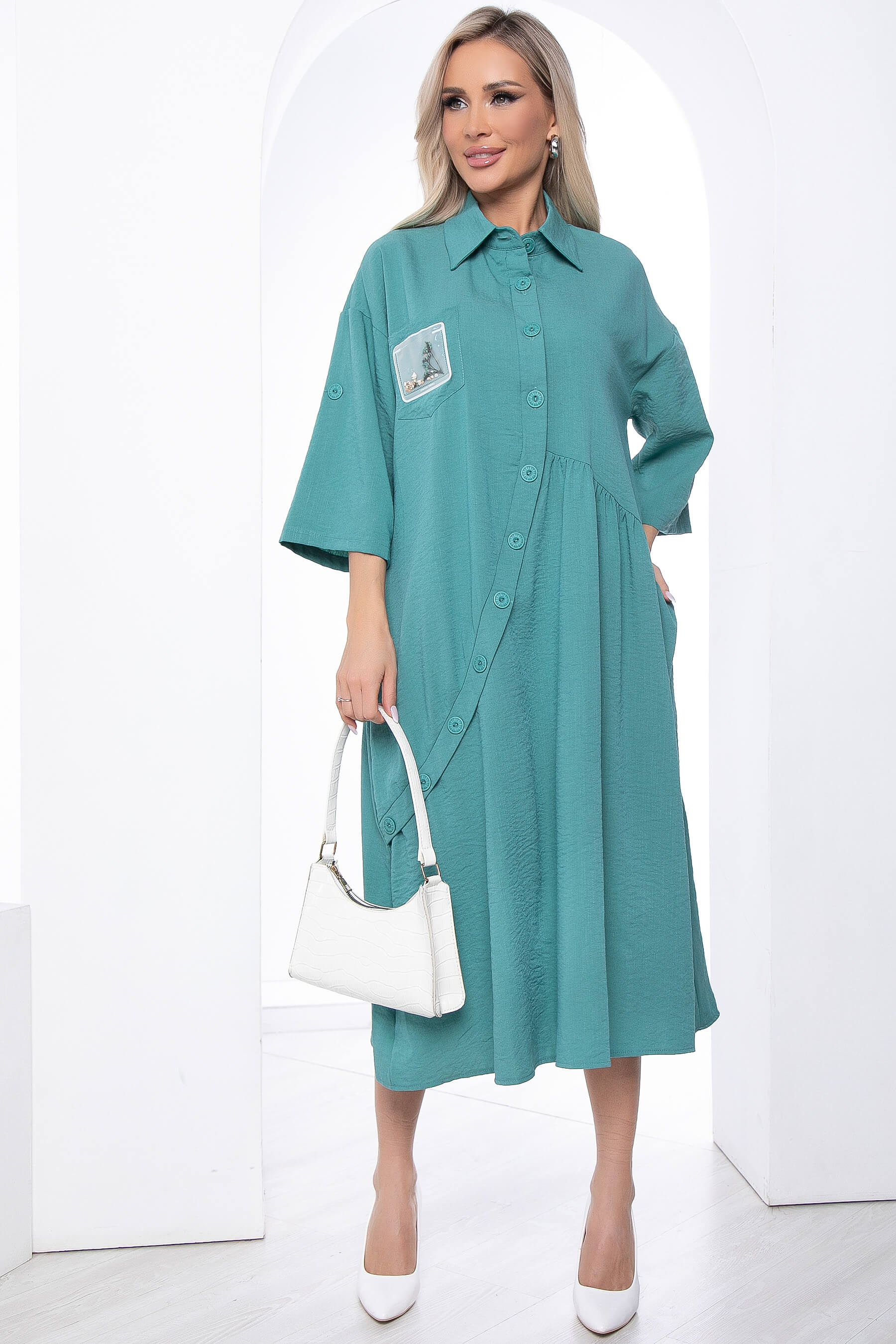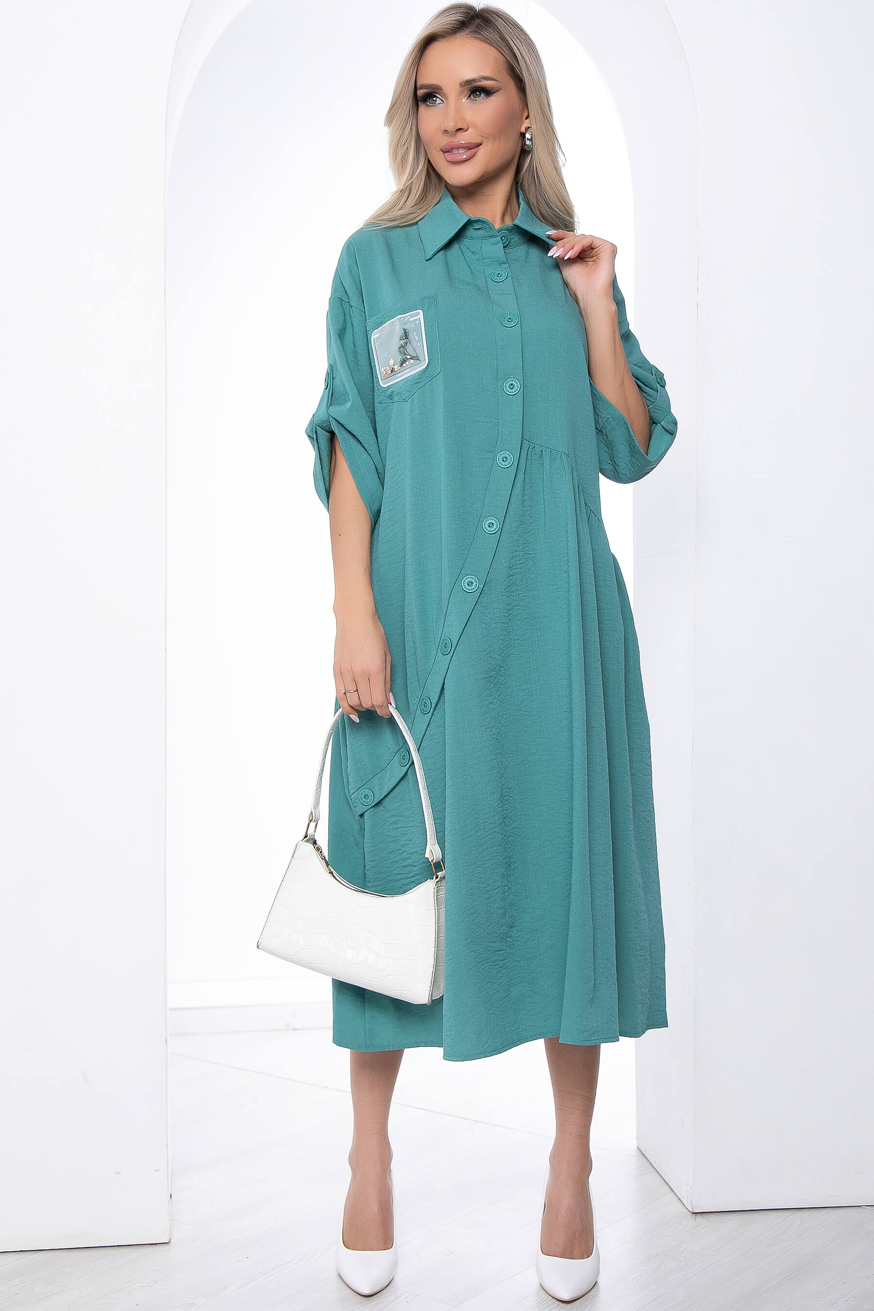 Стильное платье придаст вам привлекательности, при этом образ получится достаточно сдержанным и комфортным. Платье будет отлично смотреться даже без аксессуаров, украшает образ карман с декором. Рукав втачной со спущенным плечевым швом, длина - три четверти, подворачивается на пату. Функциональные пуговицы только в верхней части платья, по юбке присутствует имитация застежки.