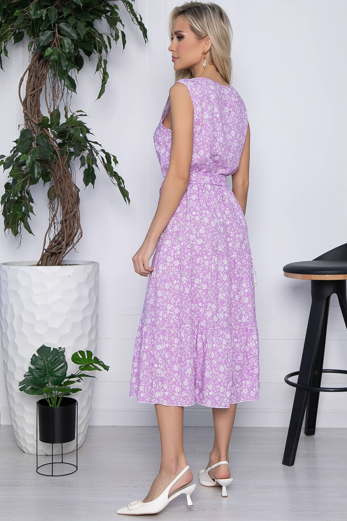Розовое платье с цветочным принтом сделает ваш образ женственным и изящным! Платье А-силуэта, длиной миди красиво подчеркнёт все достоинства вашей фигуры. Станет отличным вариантом для отпуска. В комплект входит пояс из основной ткани.