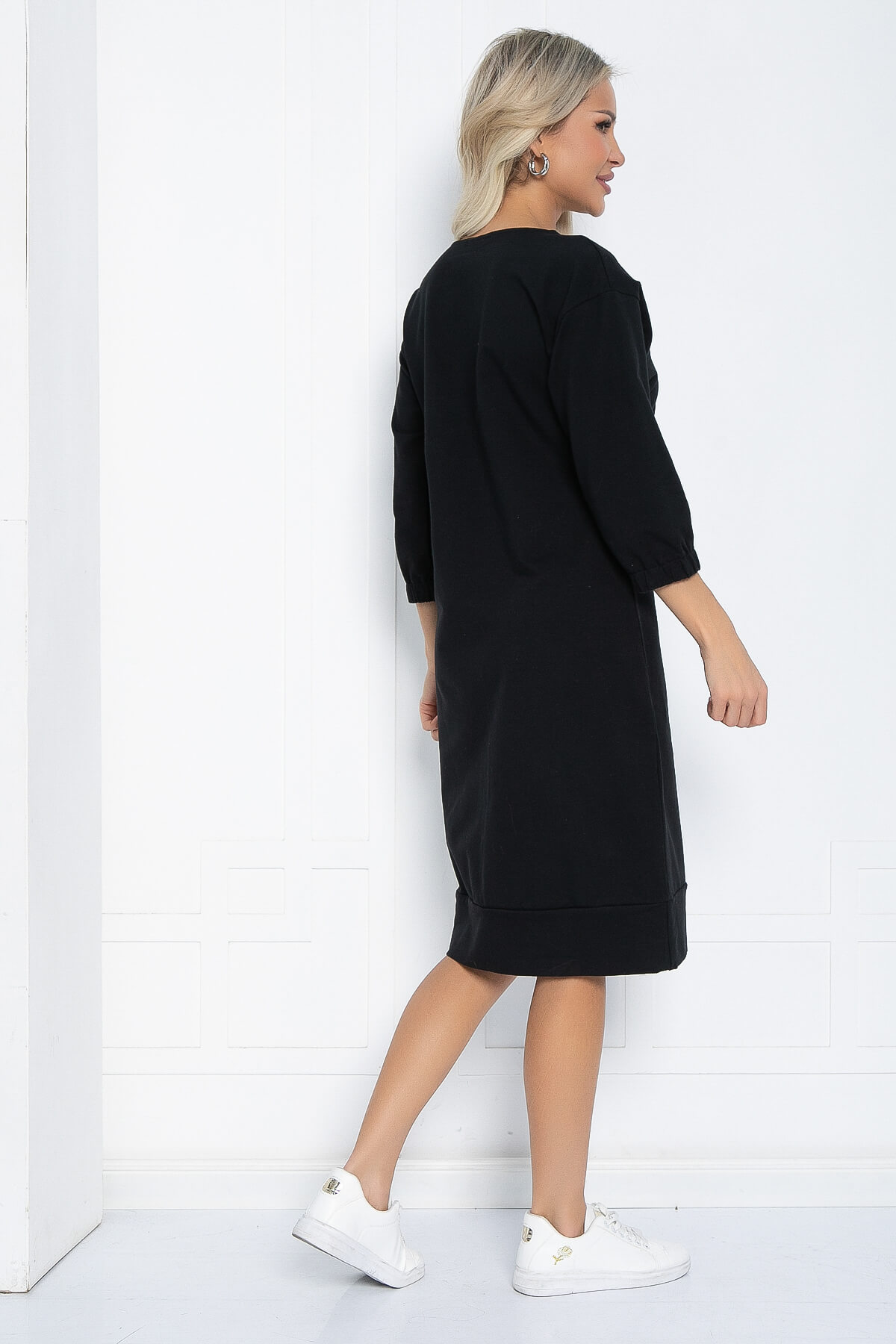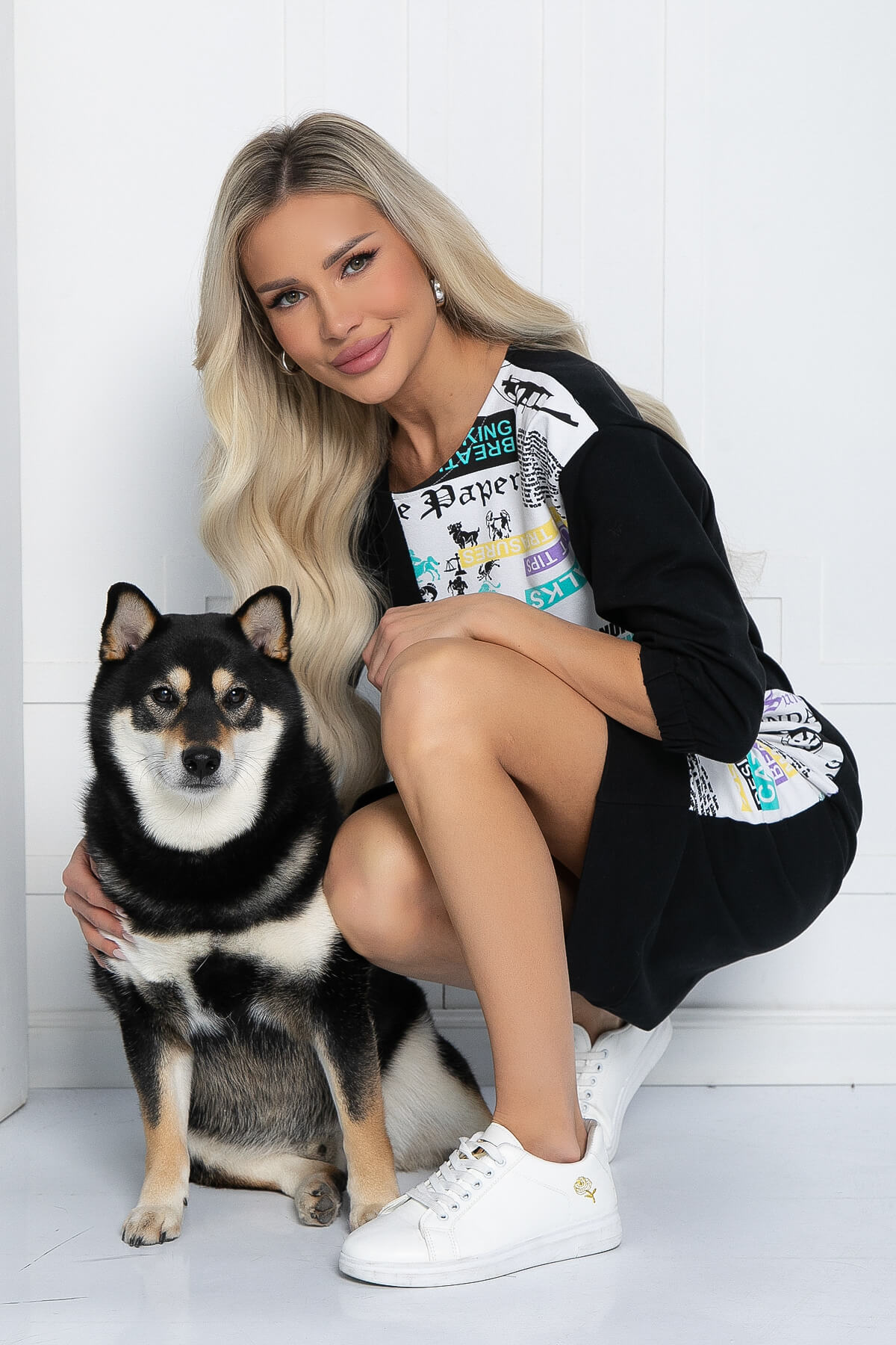 Повседневное платье в стиле спорт-шик — это превосходный выбор для стильных и активных женщин. Особенностью этой модели является необычное дизайнерское решение: перед платья делится на две части. Одна часть выполнена из основного трикотажного материала, а другая — из ткани с эффектным принтом, что создаёт уникальный акцент и выделяет ваше платье среди прочих. Оно станет отличным выбором для повседневных выходов, прогулок по городу или встреч с друзьями. Горловина платья округлая, рукав со спущенным плечом, по низу рукава — резинка. Низ платья оформлен широкой манжетой.