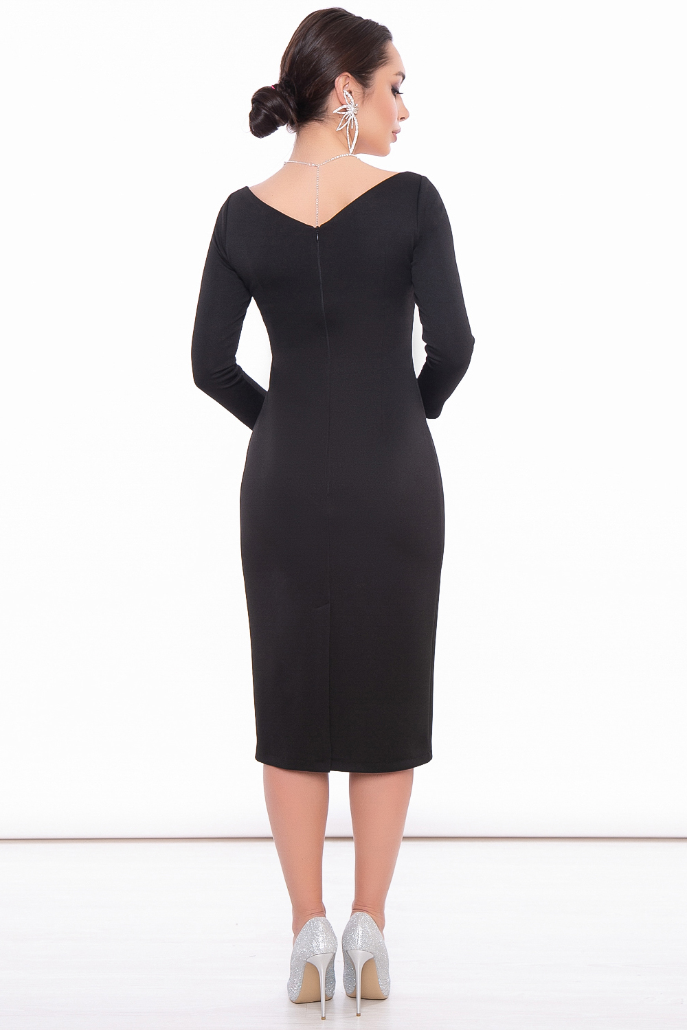 Утончённое платье-футляр. Классика кроя и элегантная зона декольте делают образ в этом платье утончённым и запоминающимся. Рукав втачной, длинный, по спинке застёгивается на молнию, на юбке - шлица.