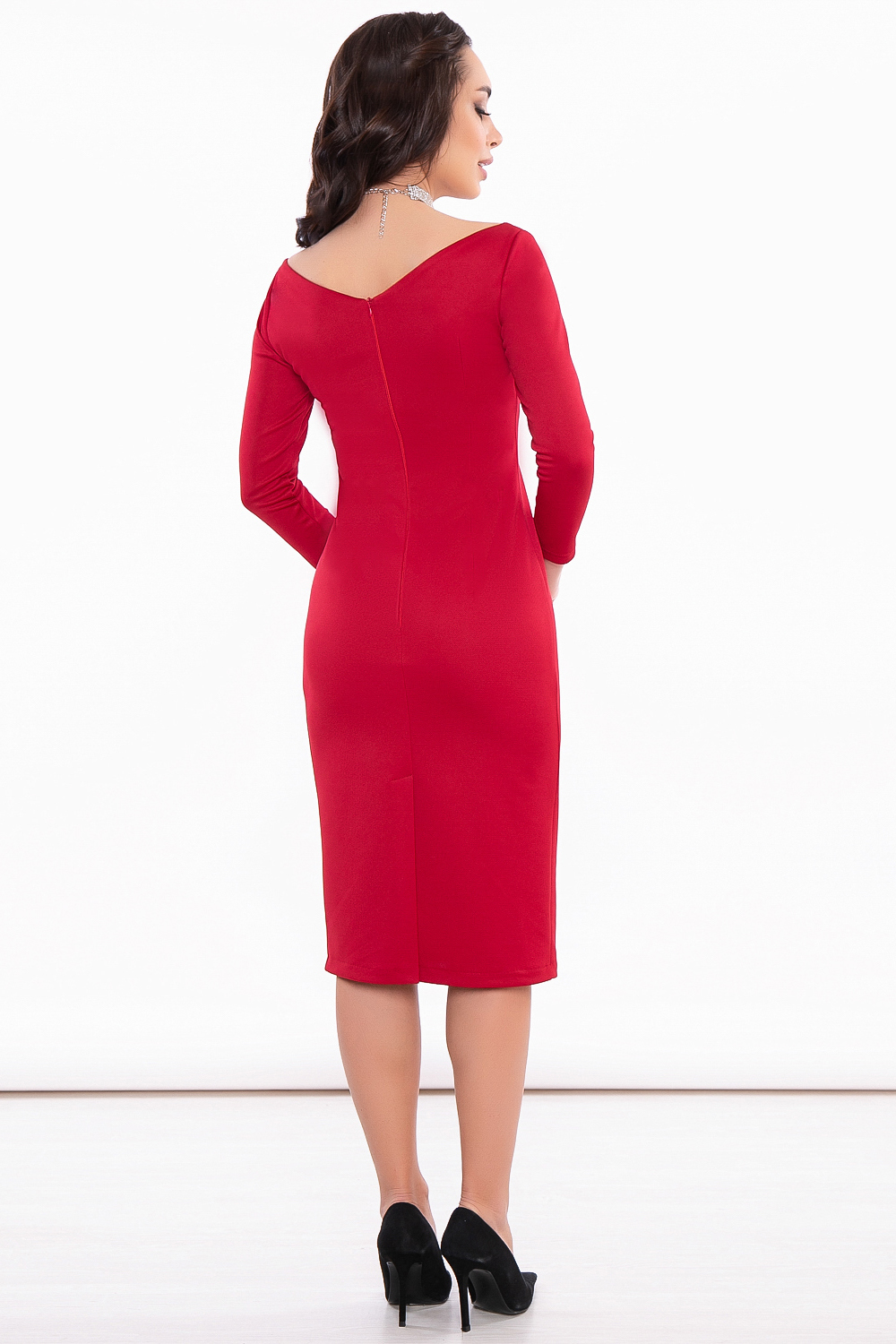 Утончённое платье-футляр. Классика кроя и элегантная зона декольте делают образ в этом платье утончённым и запоминающимся. Рукав втачной, длинный, по спинке застёгивается на молнию, на юбке - шлица.