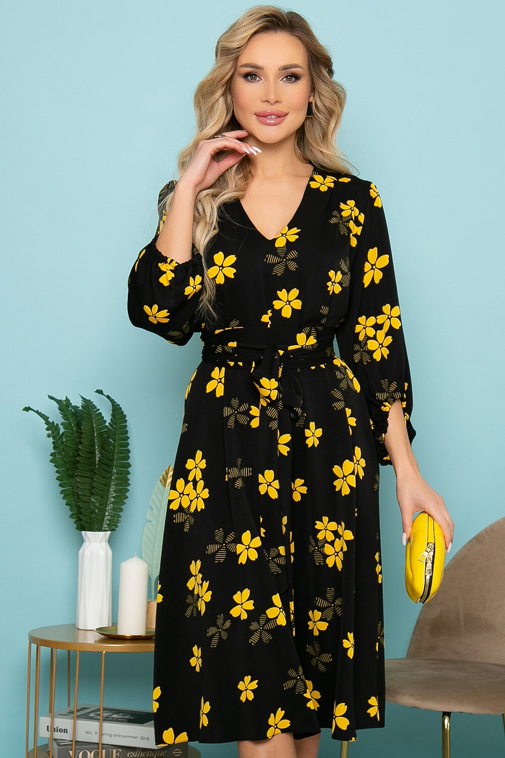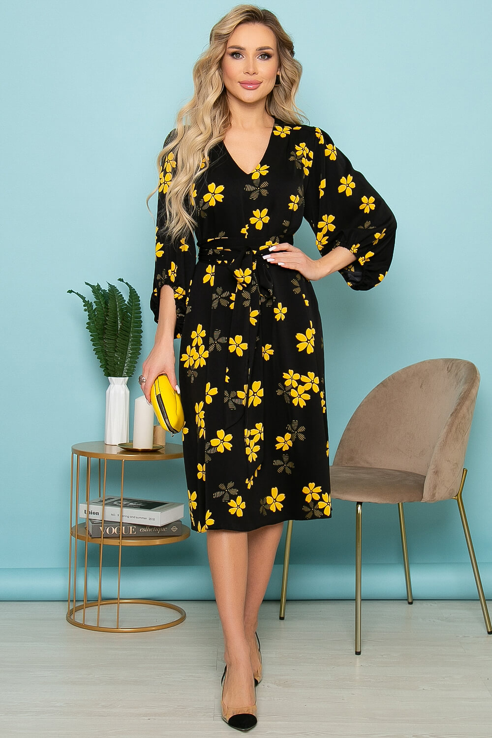 Платье из струящейся ткани - ХИТ продаж! Три метра ткани превратились в шикарное, летящее платье в классическом черном цвете с ярким принтом. Поверьте от Вас не смогут отвести восхищенных взглядов! Платье свободного силуэта. Мягкий V - образный вырез горловины. Интересного кроя рукав - втачной, три четверти, верх присборен, объемный, низ рукава асимметричный на резинке. По спинке отрезная кокетка и декоративные защипы. В комплекте широкий пояс, который можно завязать как кушак или на большой бант.