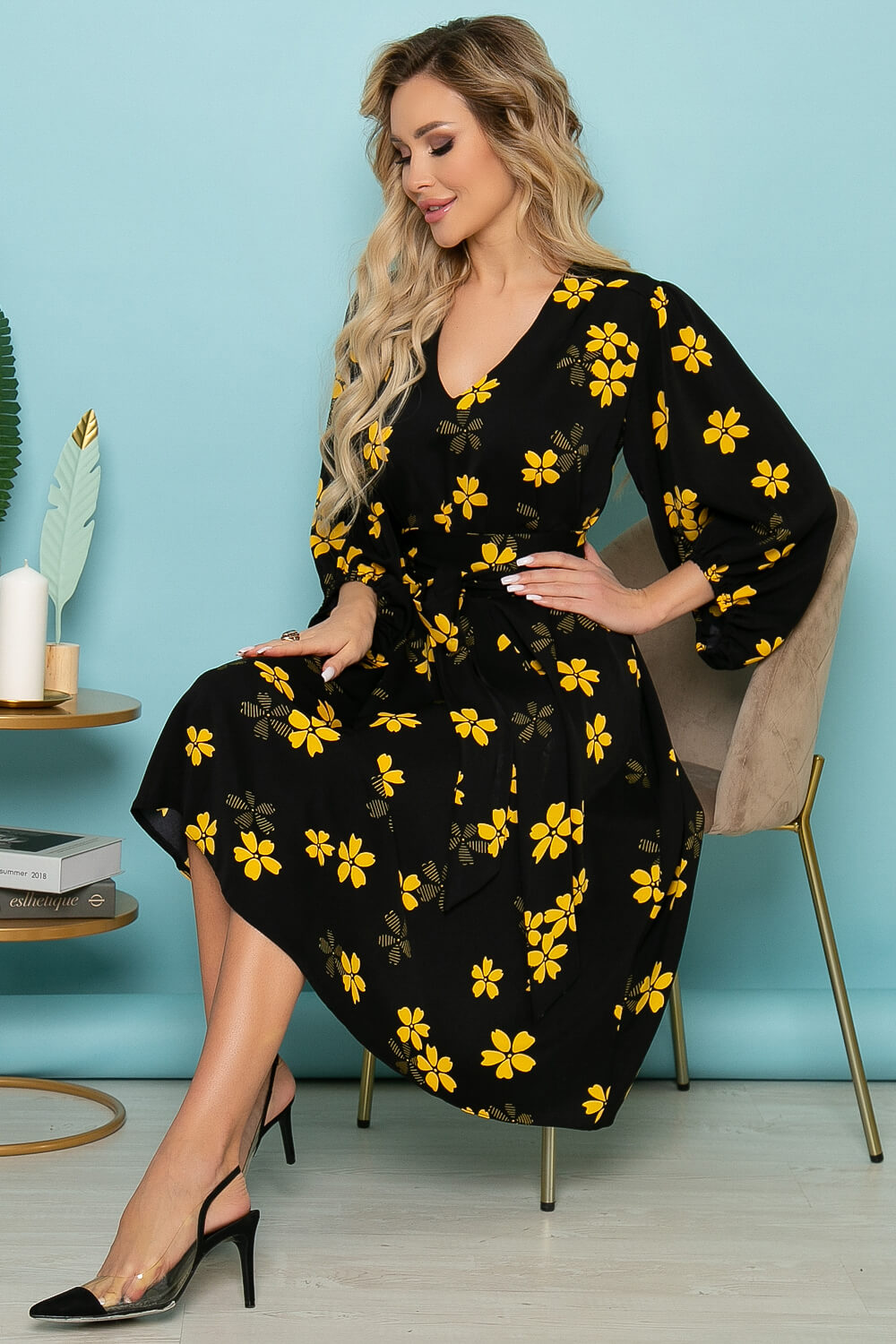 - Цвет: черный, принт: цветочный;