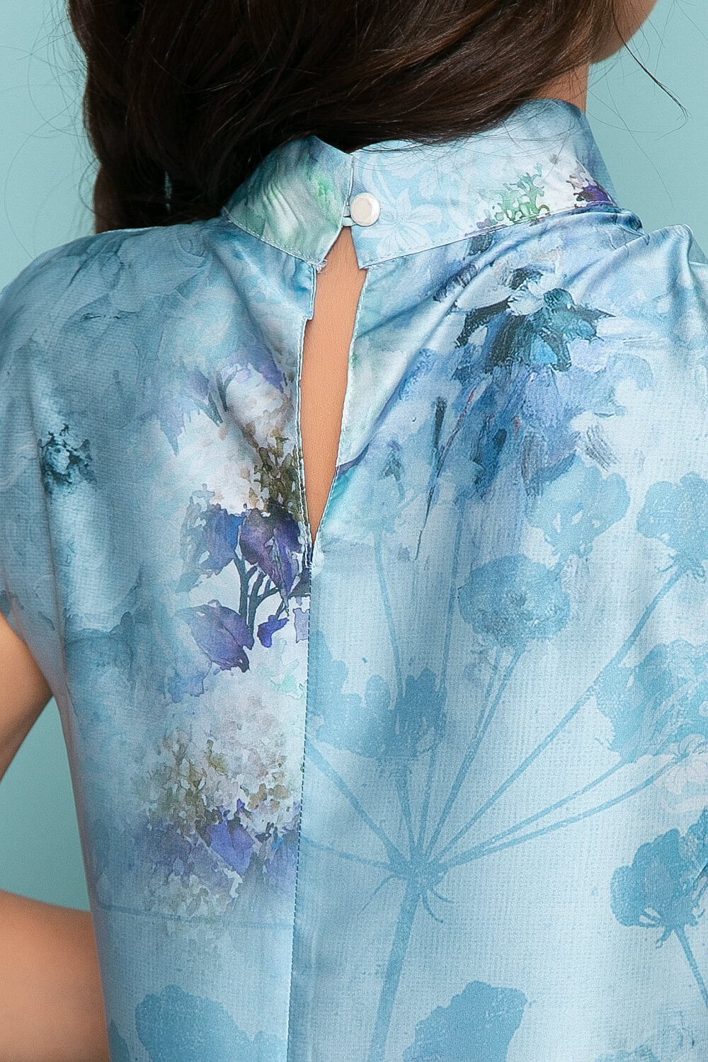 Платье "Мэй" - это настоящее восточное очарование! Платье А-силуэта из шёлковистой ткани в красивом голубом оттенке придаст определённый шарм Вашему образу. Платье без рукава, сзади, по горловине застёгивается на пуговицу.