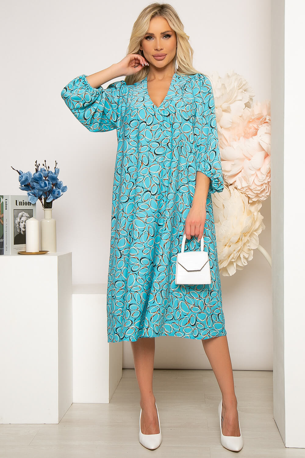 Платье из струящейся ткани - ХИТ продаж! Три метра ткани превратились в шикарное, летящее платье в новом, невероятно красивом бирюзовом оттенке. Поверьте от Вас не смогут отвести восхищенных взглядов! Платье свободного силуэта. Мягкий V - образный вырез горловины. Интересного кроя рукав - втачной, три четверти, верх присборен, объемный, низ рукава асимметричный на резинке. По спинке отрезная кокетка и декоративные защипы. В комплекте широкий пояс, который можно завязать как кушак или на большой бант.